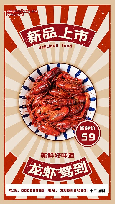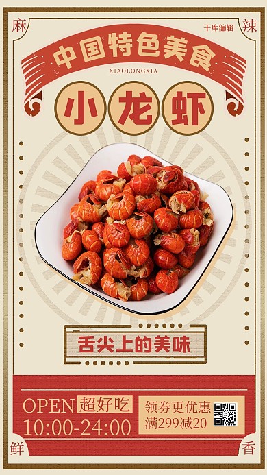 图司机手机海报提供美食龙虾盖饭红色复古风手机海报在线图片设计,一键制作生成, 图片资源是由267440于2021-05-17T16:51:19+08:00传的作品。 图片美食新店开业开业优惠优惠套餐满减红色复古纸质背景小龙虾图片素材尺寸1920x3413像素分辨率72DPI, 美食龙虾盖饭红色复古风手机海报图属于美食, 红色, 优惠, 复古, 新店开业主题。 主要用于手机营销海报行业,为您推荐与美食龙虾盖饭红色复古风手机海报相关的专题盖饭海报, 美食龙虾, 龙虾美食等优质图片模板资源。