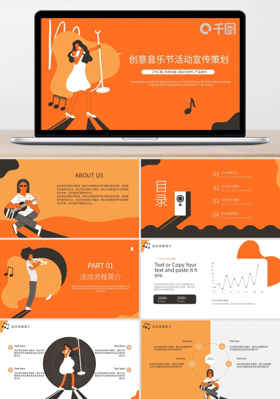 橙色杂志风格活动音乐演唱会宣传PPT模板