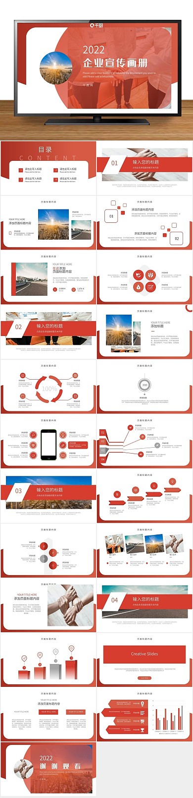 图司机PPT提供介绍产品通用企业宣传画册PPT 在线图片设计,一键制作生成, 图片资源是由-5于2021-12-20T23:41:54+08:00传的作品。 图片红色企业宣传画册介绍产品团队公司简约商务企业宣传尺寸1920x1080像素分辨率72DPI, 介绍产品通用企业宣传画册PPT 图属于红色, 商务, 简约, 团队, 企业主题。 主要用于企业宣传行业,为您推荐与介绍产品通用企业宣传画册PPT 相关的专题画册, 渐变, 红色等优质图片模板资源。
