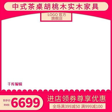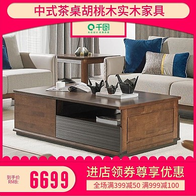 电商淘宝直通车中式茶桌胡桃木实木家具主图
