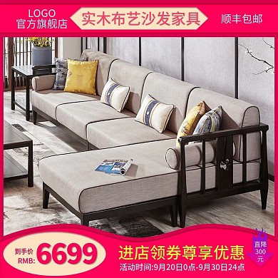 电商淘宝天猫直通车实木布艺沙发家具主图