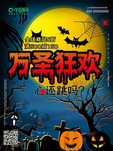 手绘背景树木南瓜蝙蝠鬼手等万圣节产品海报