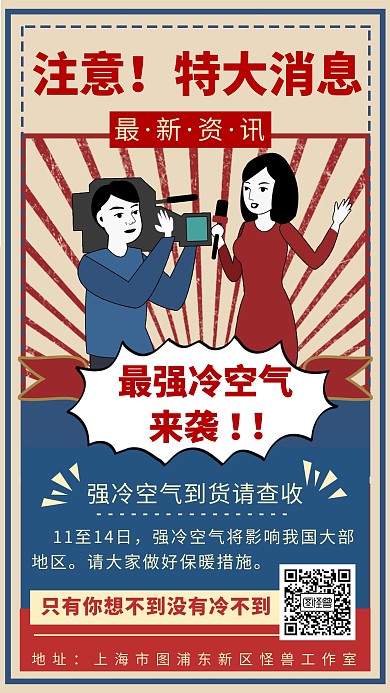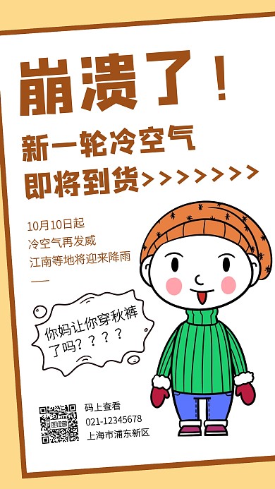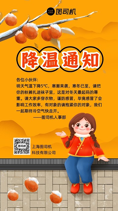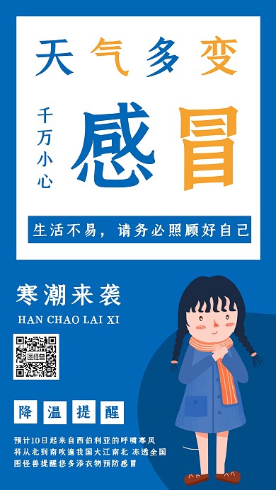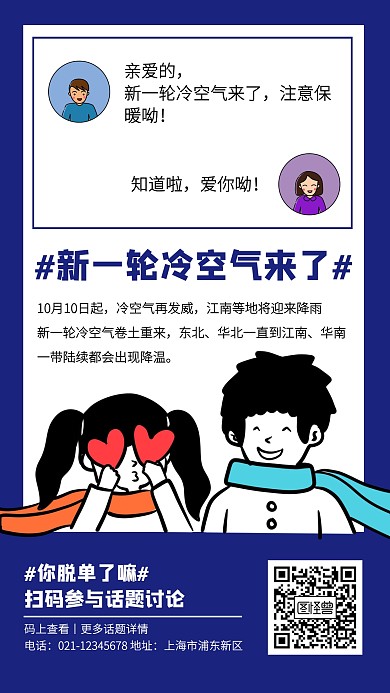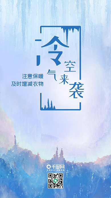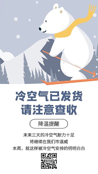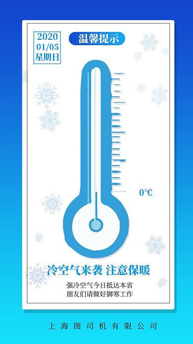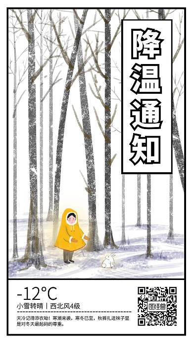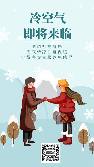 降温通知保暖冬天提醒冷空气下雪手机海报