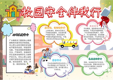 蓝清新简约卡通校园板报安全教育宣传手抄报