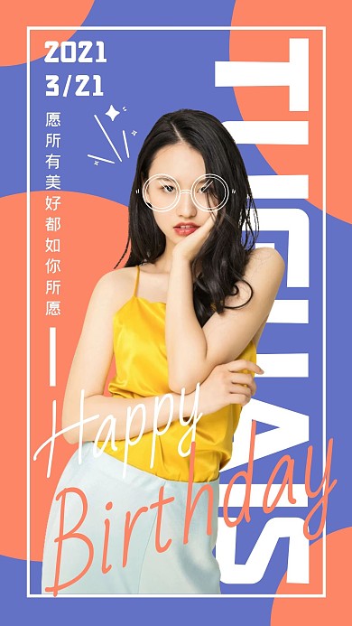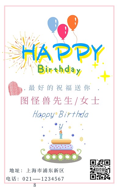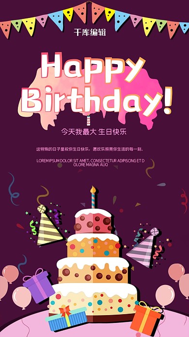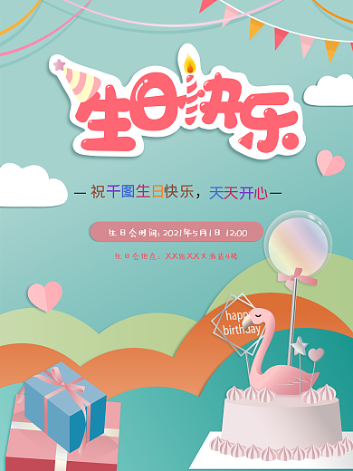 祝你生日快乐祝福模板简约大气可爱宣传海报