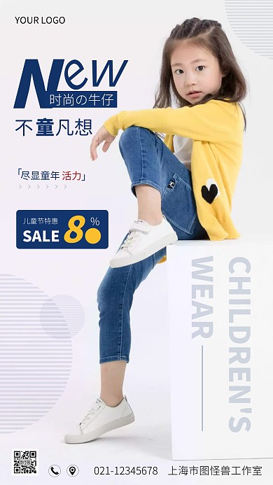 儿童牛仔裤儿童节促销摄影风手机营销海报