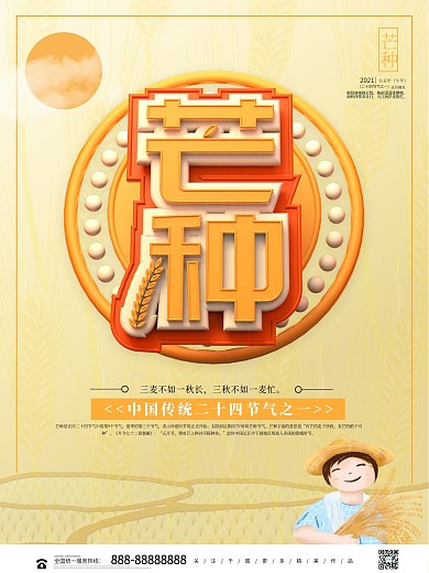 手绘风二十四节气谷雨春耕农忙插秧海报