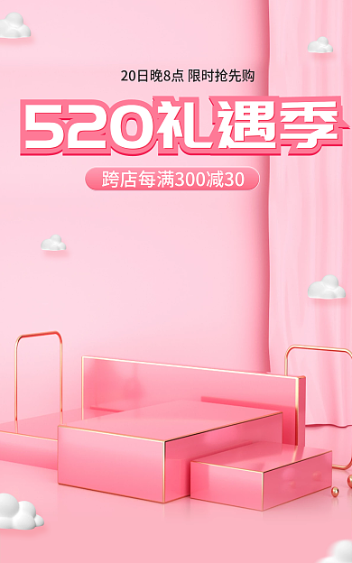 粉色520活动时间到手价唯美浪漫手机端电商首页