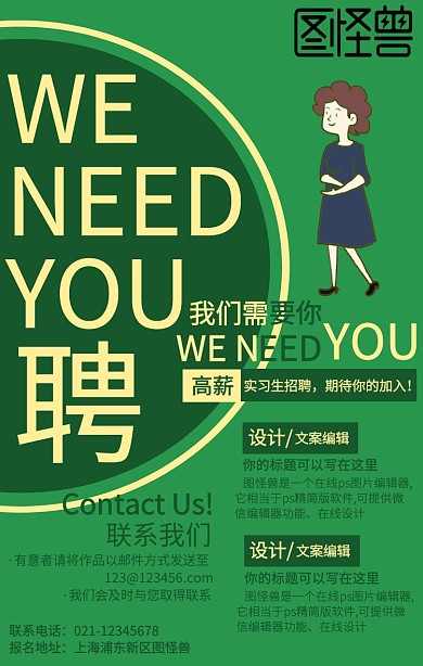 高薪诚聘内容编辑实习生企业招聘宣传长图