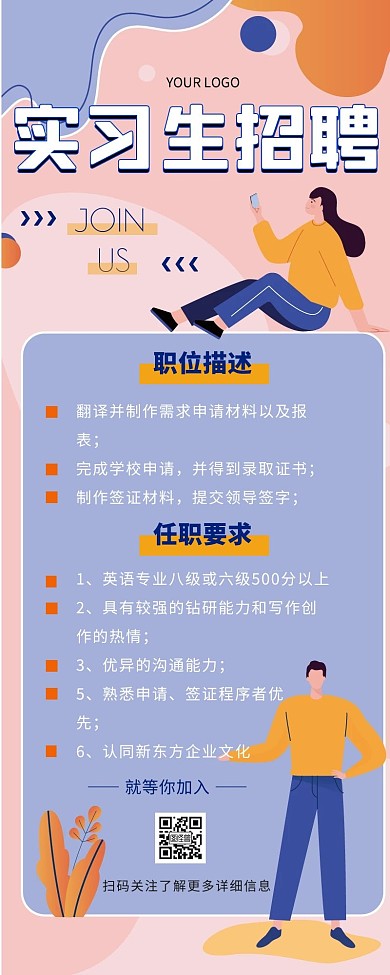 橙黄色扁社招岗位招平风格实习生招聘海报