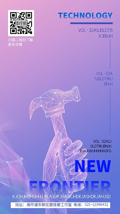 创意蓝色扁平科技UI设计讲座宣传手机海报