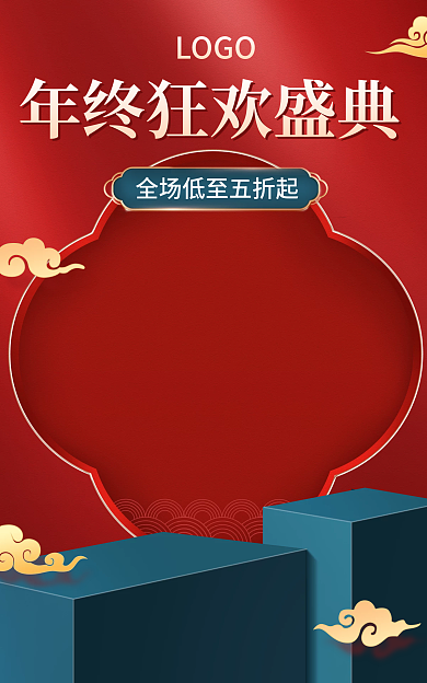 电商淘宝双十二年终盛典促销中国风建筑海报