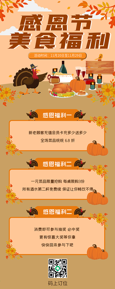 公众号封面外国节日感恩节手绘女孩火鸡美食