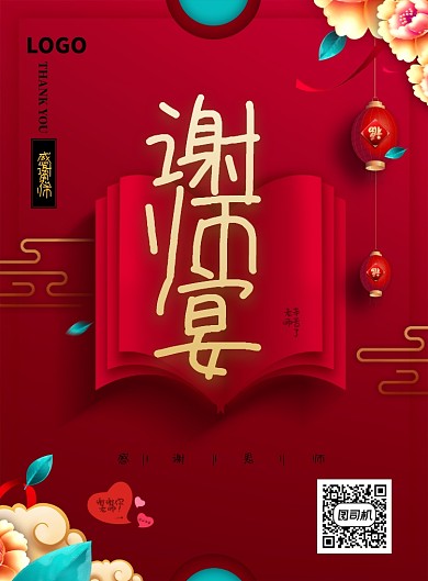 红色喜庆C4D感谢恩师金榜题名谢师宴展板