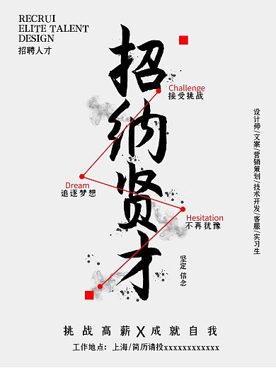 蓝色渐变简约创意招纳贤士招聘宣传海报